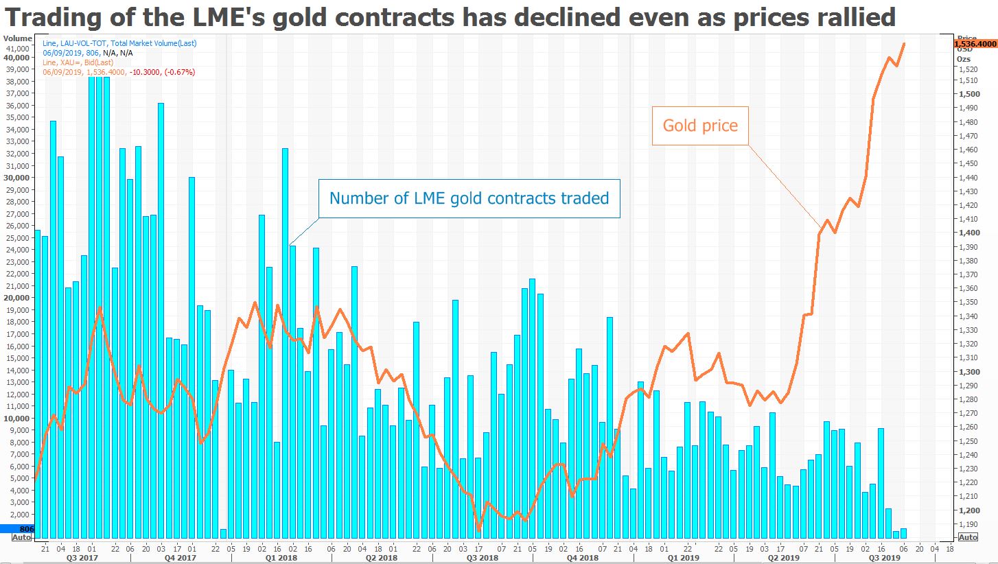 Fewer than 18,000 LME gold contracts changed hands in August – the lowest monthly total on record and an eighth of the number traded in its heyday of September 2017.