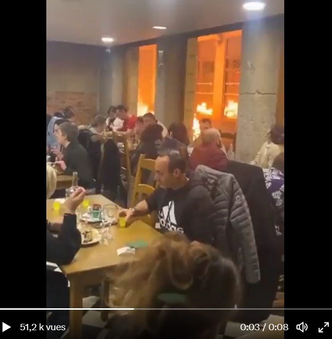 Il semblerait que ce soit un restau de Saint Etienne. Alors je retire ce que j'ai dit : Paris n'est pas la Ville Lumière et les parisiens préfèrent la version classique rats/tas de poubelles aux feux de joie.