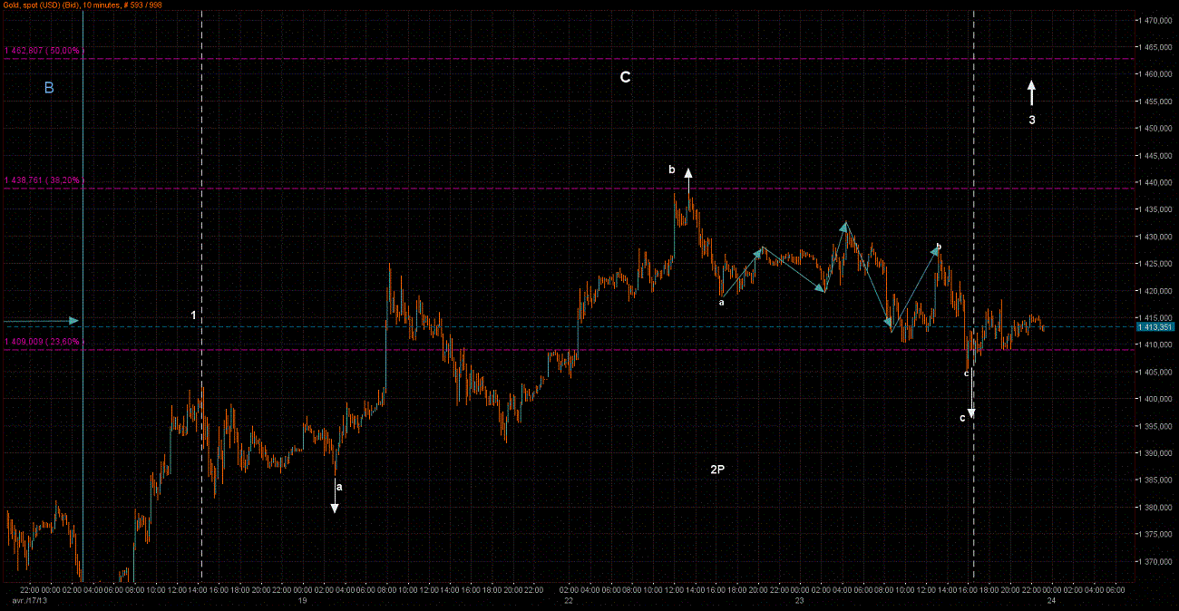 Rien de nouveau la vague continue avec la 3 nous sommes dans la P cette 3, il me semble, un retour vers ou sous les 1417$ confirmerais que nous faisons la c de cette P qui a fait son point bas vers 1409$.
