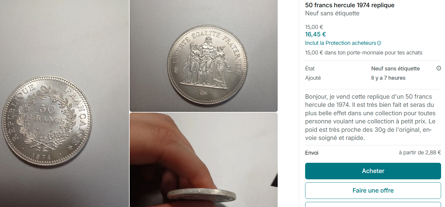 https://www.ebay.fr/itm/355797131251J'en ai déjà vu. L'équivalent américain de la Société française des monnaies ou du Médaillier Franklin appose ainsi des images thématiques par exemple sur des demi-dollars actuels et commercialise ça en beau coffret bois : par exemple les grands peintres, et sur une face de chaque demi-dollar du coffret tu as la "Jeune fille à la perle", le "Bal des canotiers", un Van Gogh... sur toute la surface d'une face, avec le relief du demi-dollar visible en-dessous.