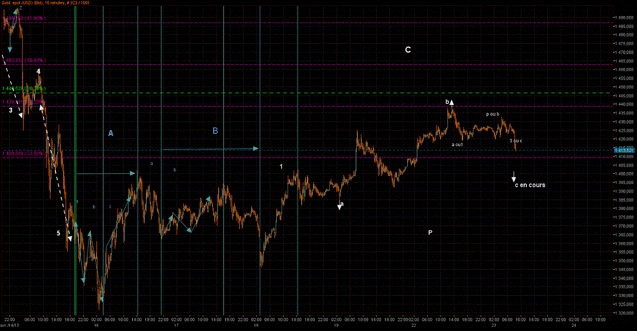 Puis nous continuerions la hausse au dessus de 1427 avec une vague 3 qui ne devra pas être plus petite que la 1 et la 5.